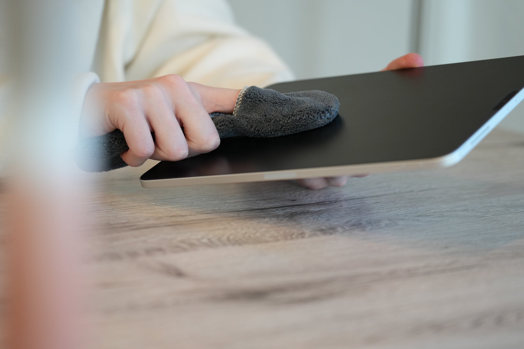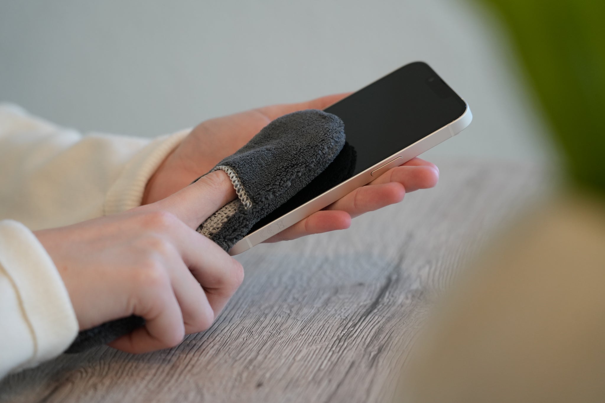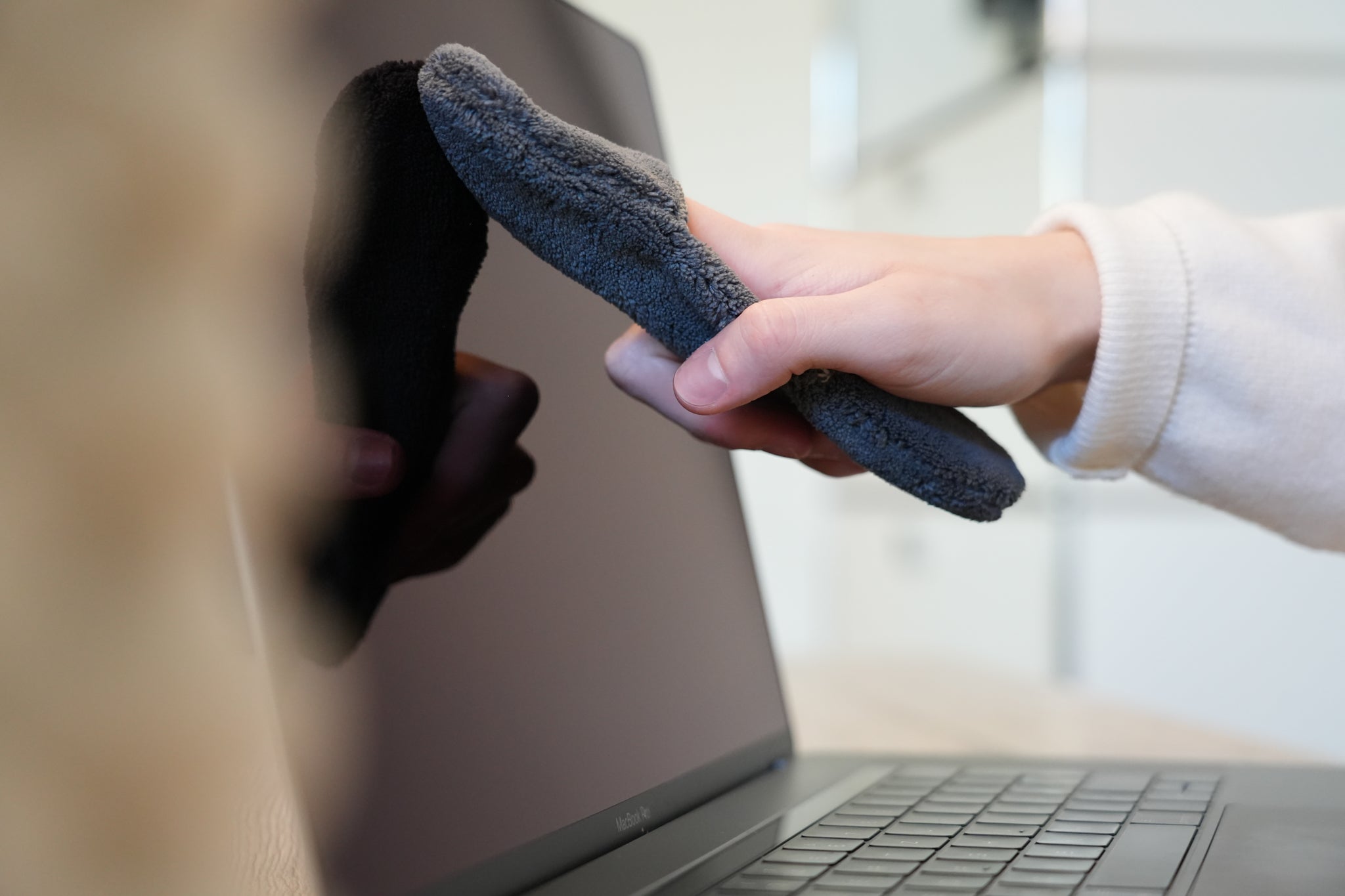 Der ruhrfaser Putzfingerling reinigt nicht nur Brillen, sondern auch Displays.